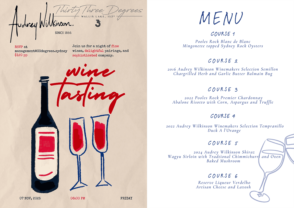 To talk more about your occasion, wedding, event, private dinner, corporate event, or next big celebration, please get in touch with our events team management@33degrees.sydney.